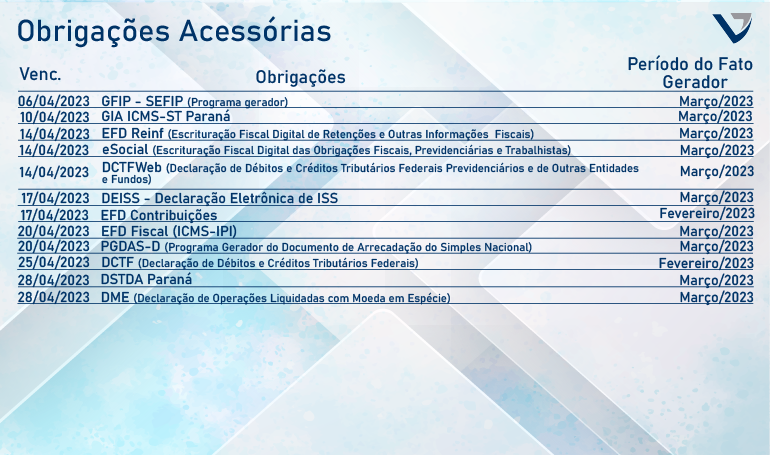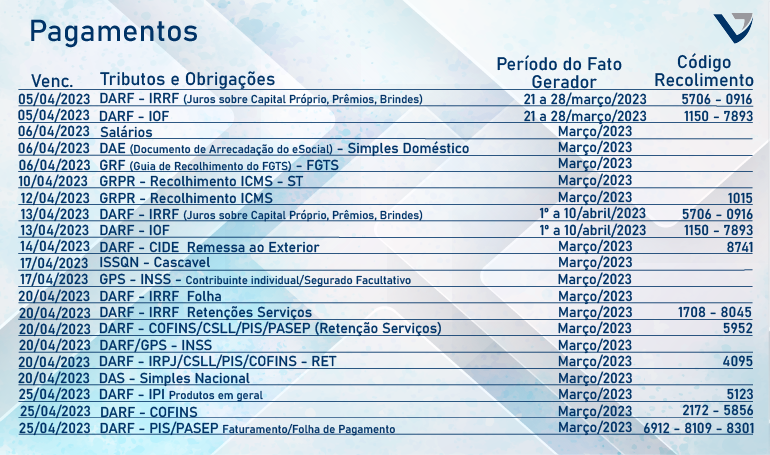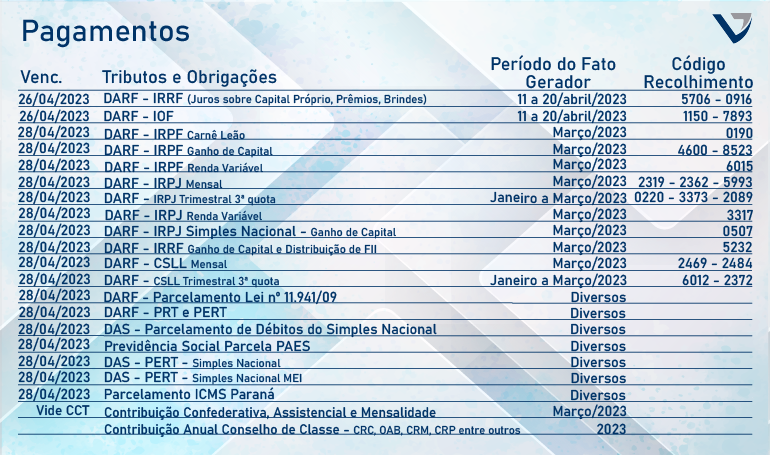 Agenda Tributária Abril 2023