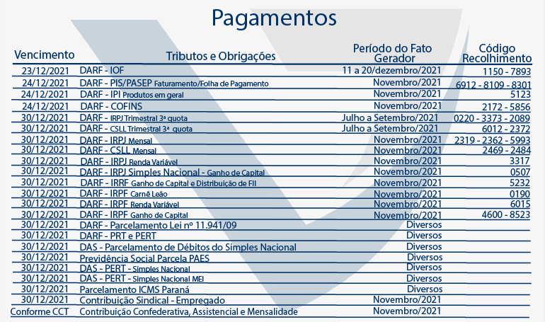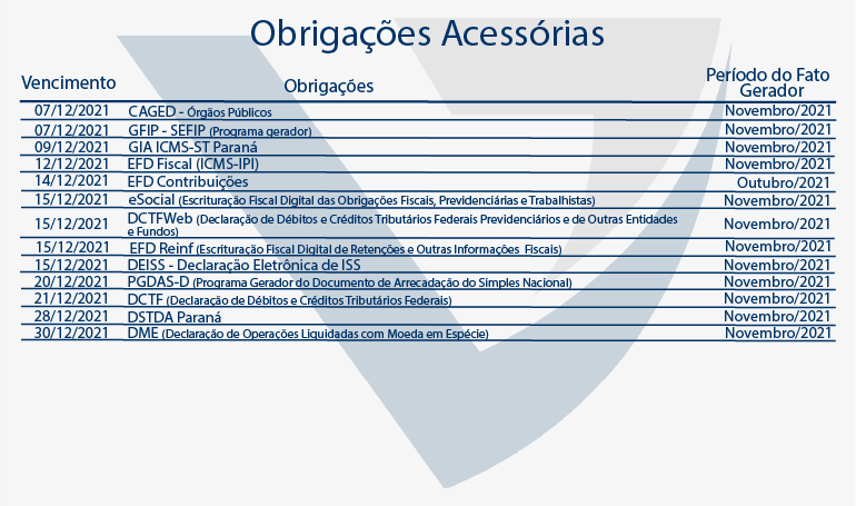 Agenda Tributária Dezembro 2021